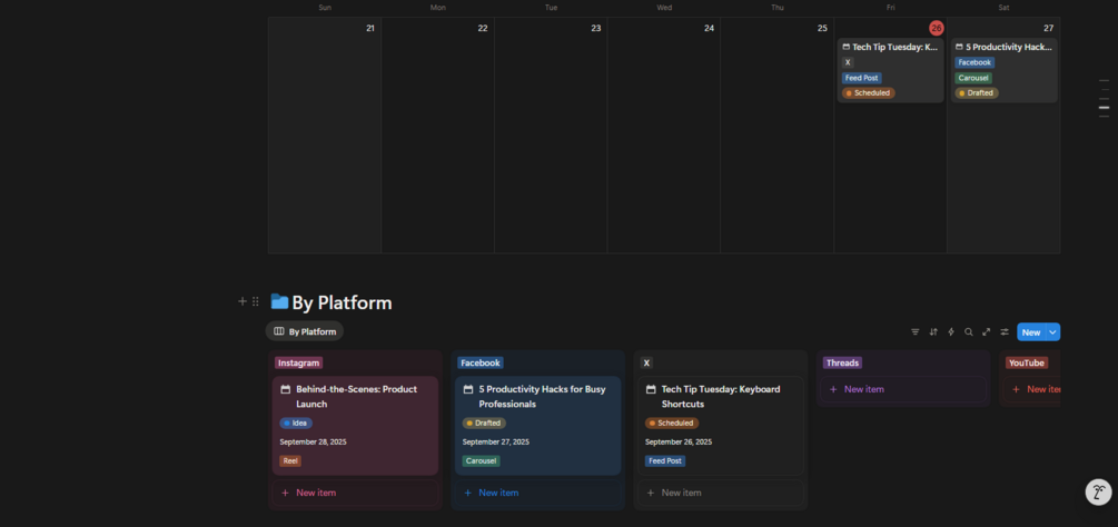 - π Schedule & Status β Track posts from idea β drafted β scheduled β posted