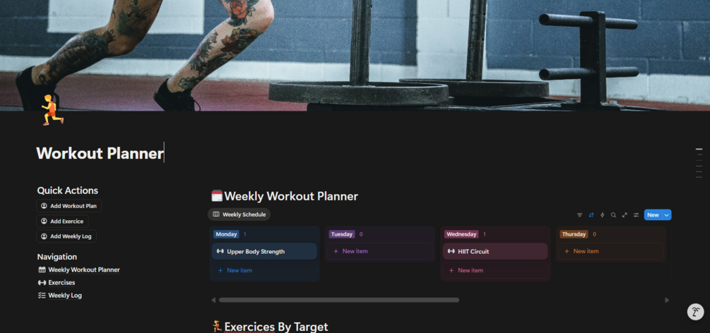 With dedicated databases for Weekly Workouts and Exercises, you can: