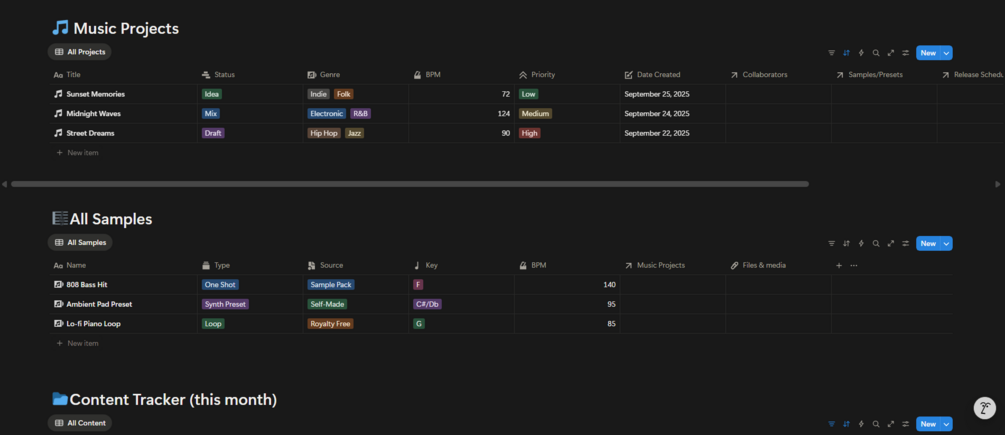 Whether you’re managing beats, collaborating with artists, tracking releases, or handling royalties, this system keeps everything in one place so you can focus on making music, not managing chaos.