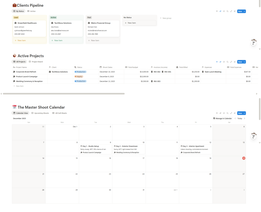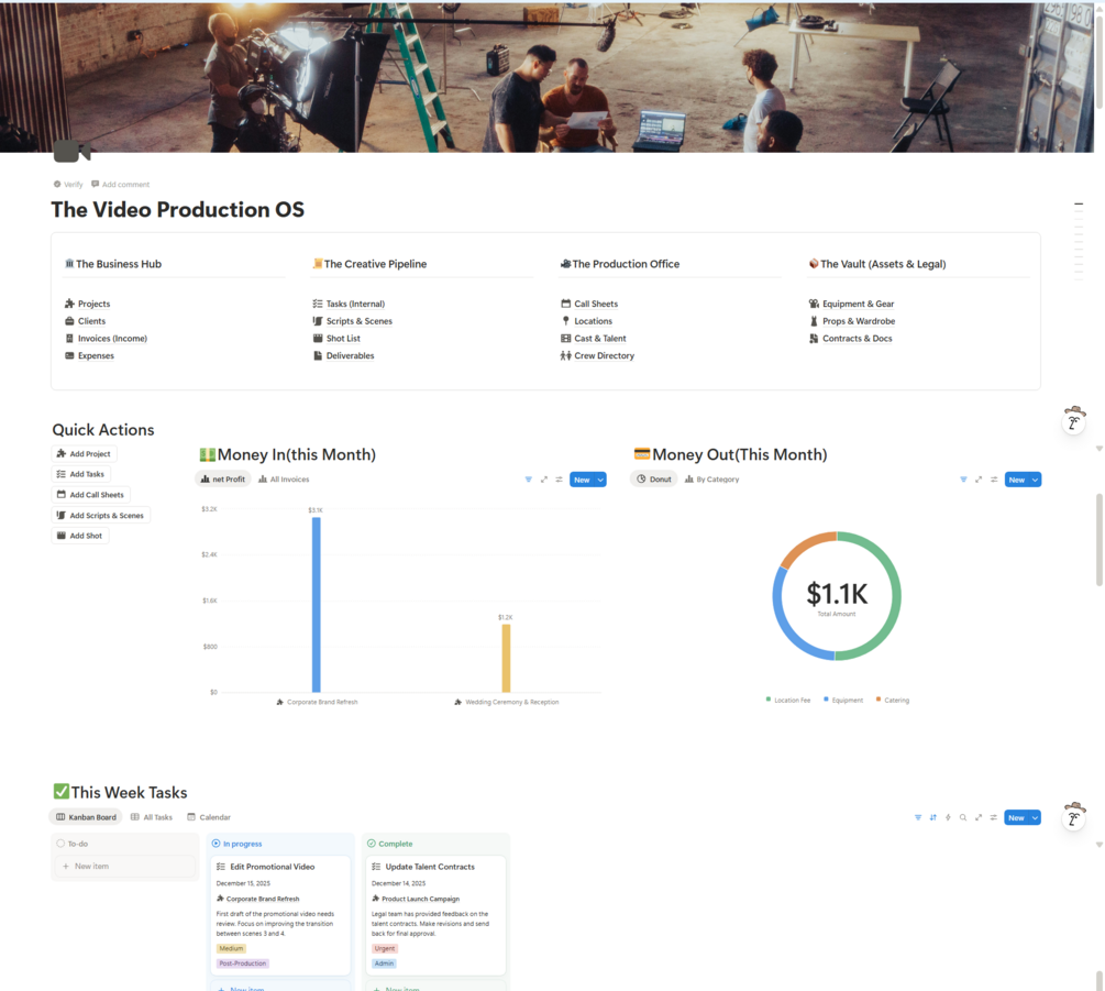 - The Vault:Asset Inventory (Gear/Props) and Legal Contracts Hub.