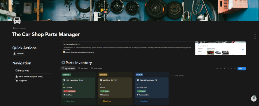 The Car Shop Parts Manager is a simple inventory system for your physical garage shelves.