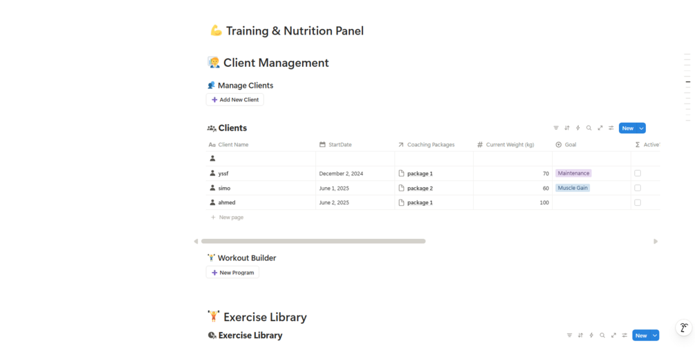 • πŸ‘€ Clients Database – track client profiles, progress, contact info, and coaching notes.