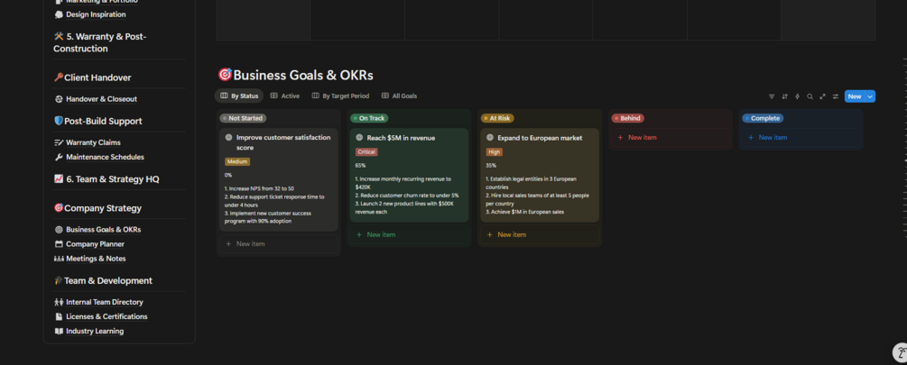 6. 📈 Team & Strategy HQ Dashboard Manage your internal team and business growth.