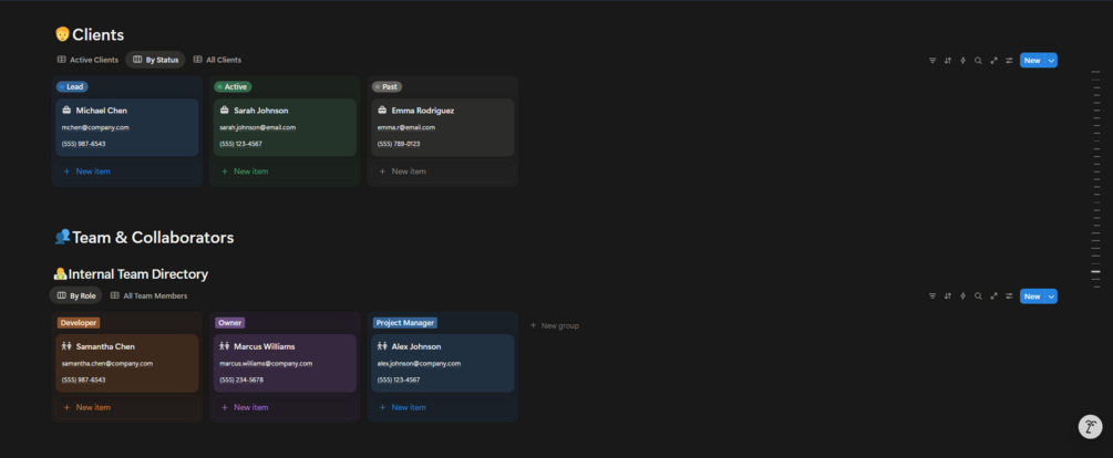 2. 🤝 Clients & Stakeholders (CRM) Manage every relationship professionally.
