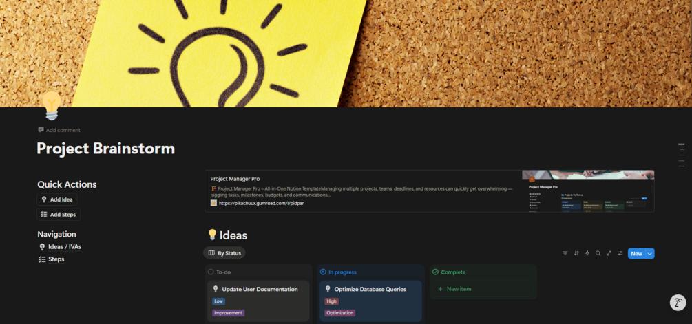 Perfect for creators, entrepreneurs, students, or teams, this template makes it easier to brainstorm, collaborate, and turn scattered thoughts into actionable projects.